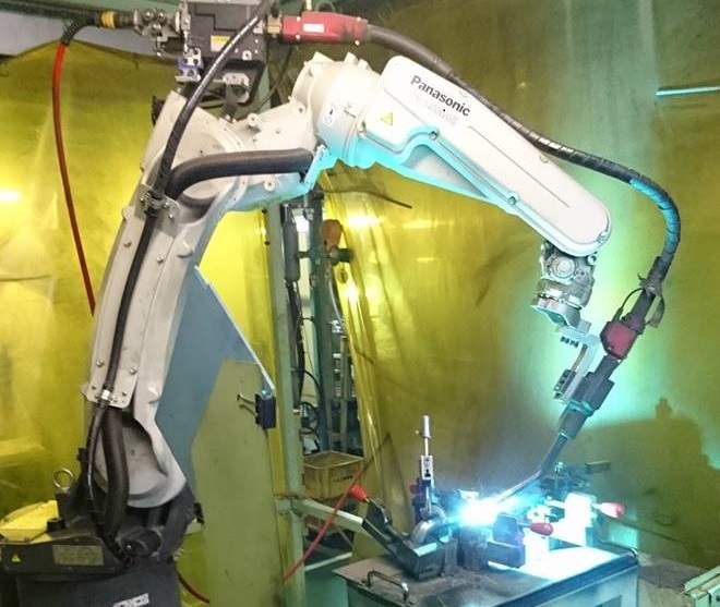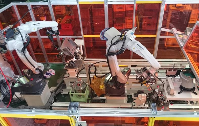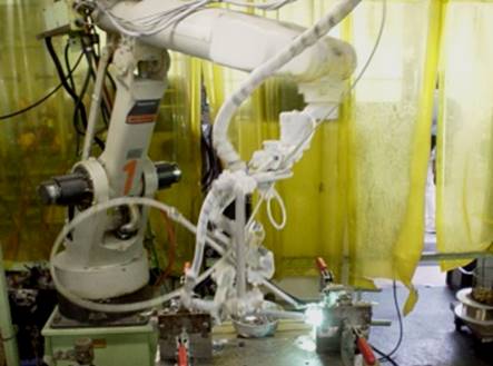 仮付とろう材塗布をロボットと定量供給機装置により自動で行います。