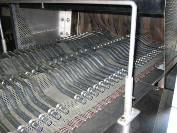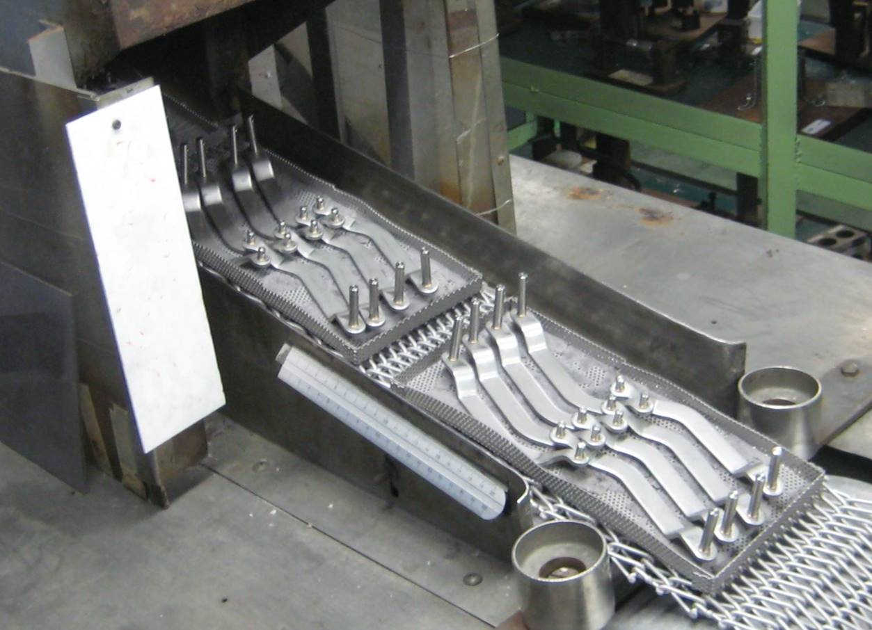 製品を炉にベルト搬送し、アンモニア分解ガス内でろう付けをするものです。